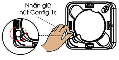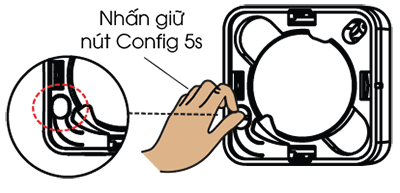 Nhấn giữ nút Config trong 5s cho đến khi đèn chỉ thị sáng hồng thì thả tay.