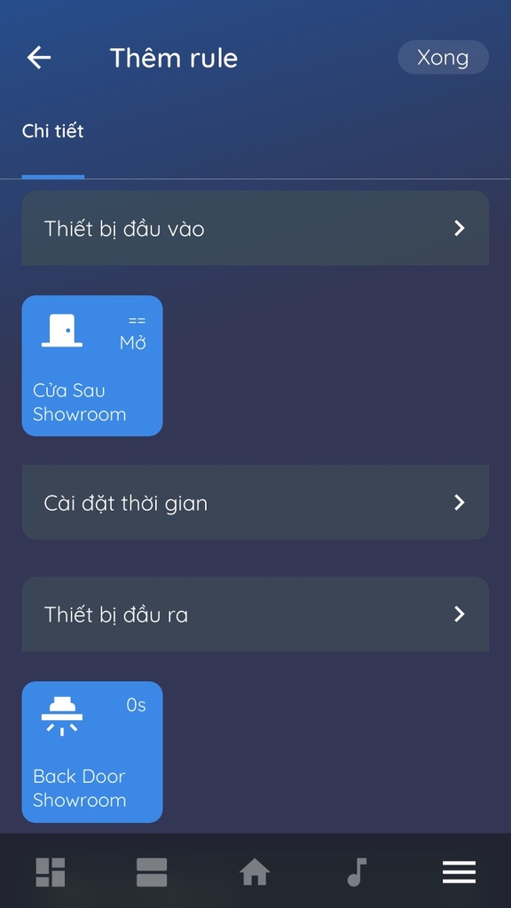 - Đầu vào của Rule là cảm biến cửa, đầu ra là thiết bị mà người dùng muốn điều khiển bằng cảm biến.